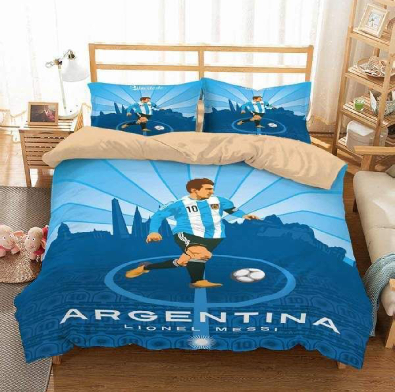 Celebrate the GOAT with the Argentina Messi Microfiber Bedsheet & Pillowcase Set! Made from high-quality microfiber, this set offers a super-soft, lightweight, and breathable feel, ensuring a comfortable sleep. The durable fabric keeps the vibrant Messi and Argentina-themed prints fade-resistant, while its wrinkle-free and easy-care nature makes maintenance effortless. Perfect for football lovers who want to bring style, passion, and comfort to their bedroom!