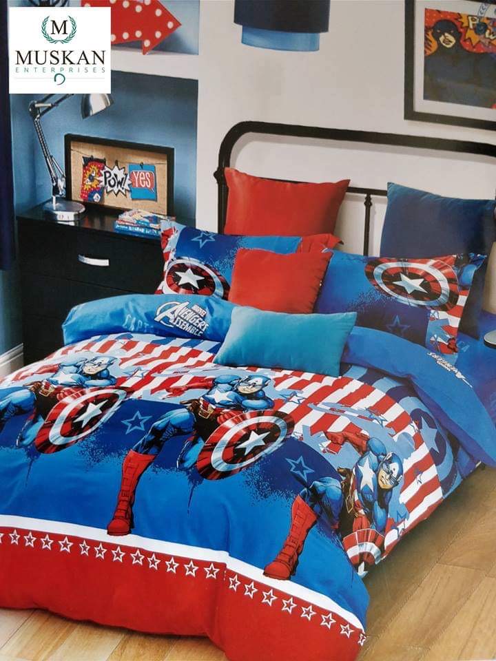 Bring superhero power to your bedroom with the **Captain America Cotton Sateen Bedsheet & Pillowcase Set**. Made from **premium cotton sateen**, it offers a **silky-smooth texture, elegant sheen, and breathable comfort** for a restful sleep. The high-quality fabric ensures **vibrant, long-lasting prints**, while its wrinkle-resistant finish keeps your bed looking neat. Perfect for Marvel fans who want a touch of **luxury and durability** with their favorite hero!