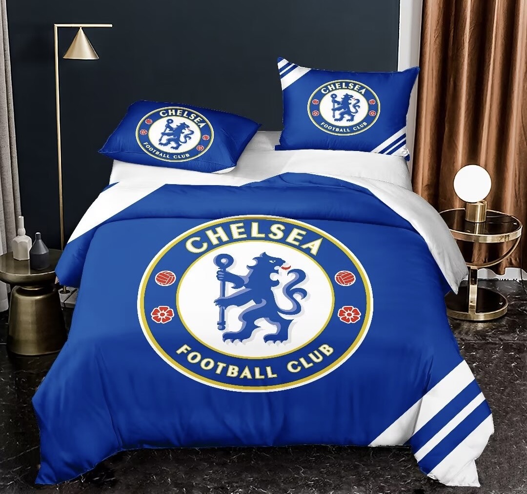 Show your **Chelsea FC** pride with the **Chelsea-Themed Microfiber Bedsheet & Pillowcase Set**! Made from **high-quality microfiber**, this set offers an **ultra-soft, breathable, and lightweight feel** for ultimate comfort. The durable fabric keeps the **iconic Chelsea prints vibrant and fade-resistant**, while its **wrinkle-free and easy-care** design ensures your bed stays fresh. Perfect for devoted Blues fans who want to bring their **team spirit and style** to their bedroom! 🔵⚽🔥