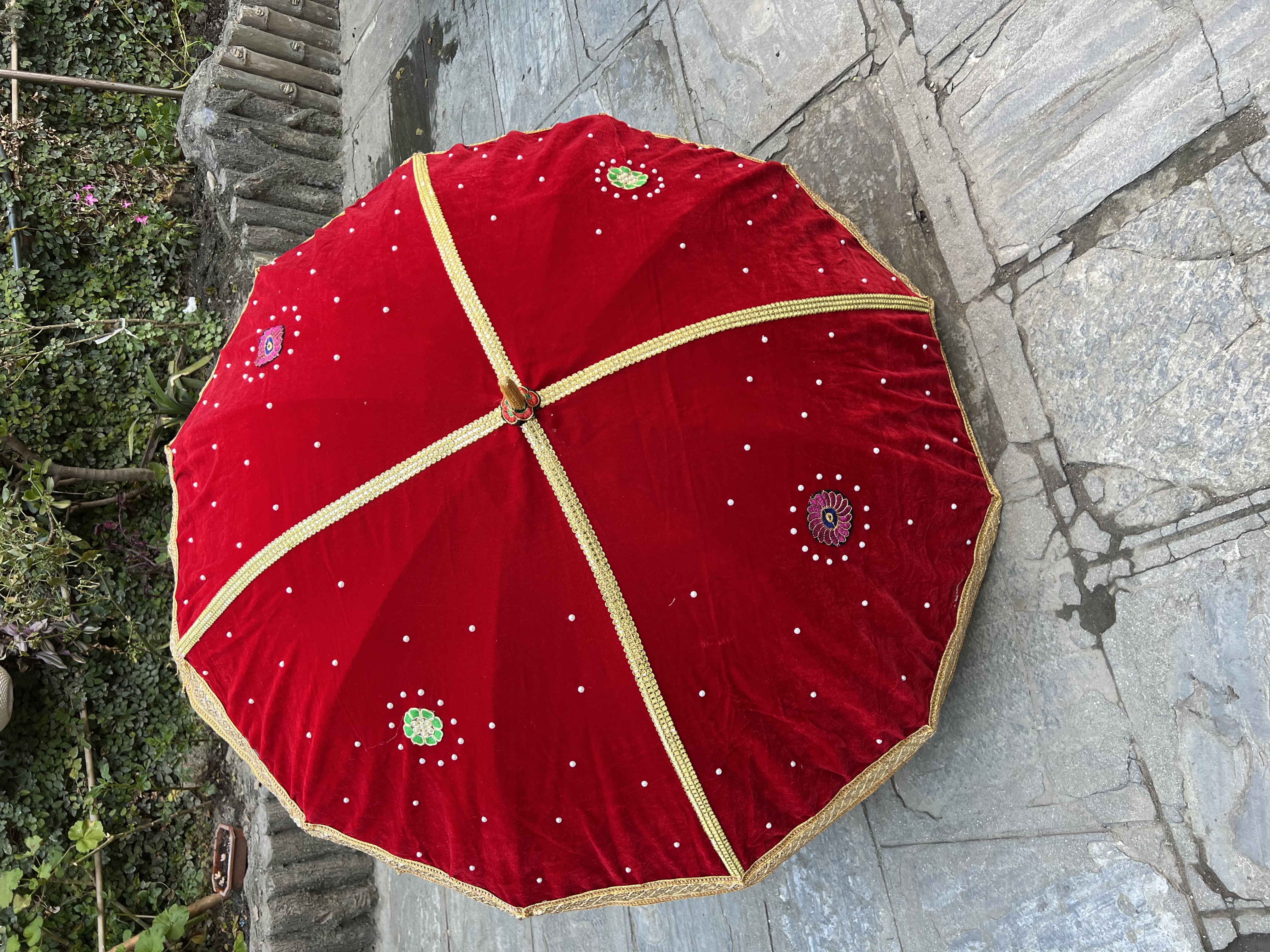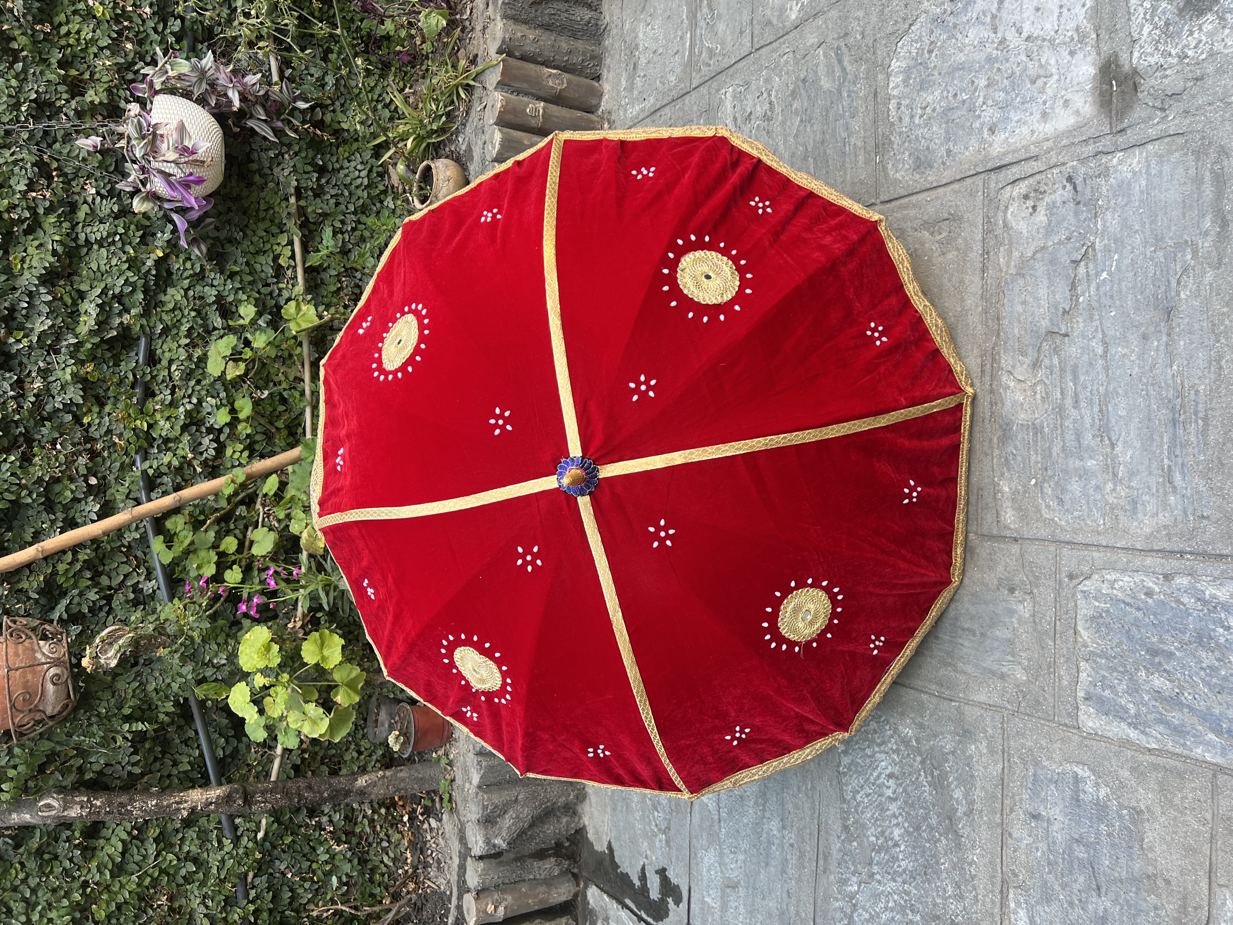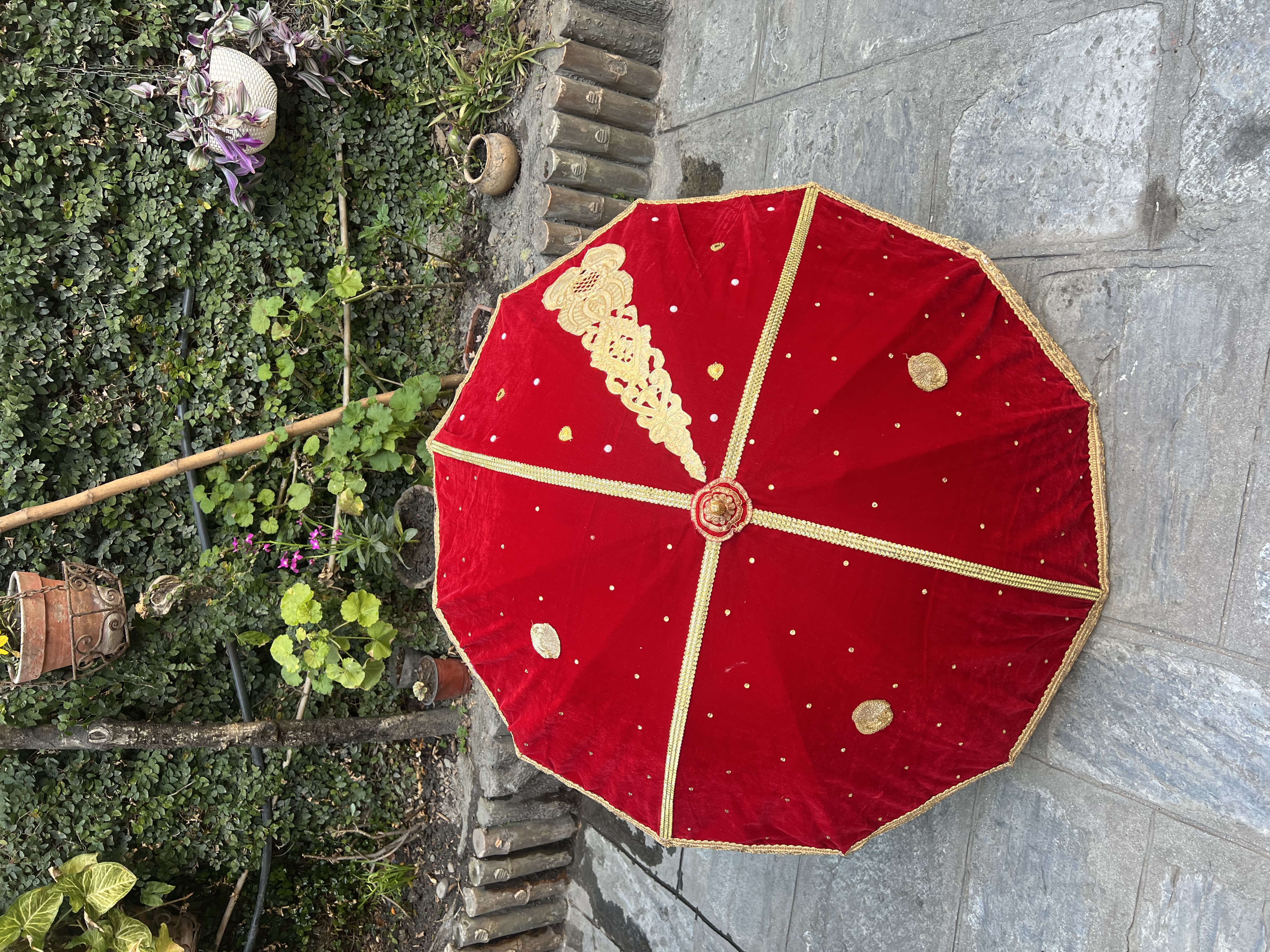Add a touch of tradition with this Velvet Nepali Umbrella, handmade in Nepal with rich velvet fabric and intricate detailing. Perfect for decor, cultural events, or gifting, it reflects Nepal’s vibrant craftsmanship and heritage in every stitch.