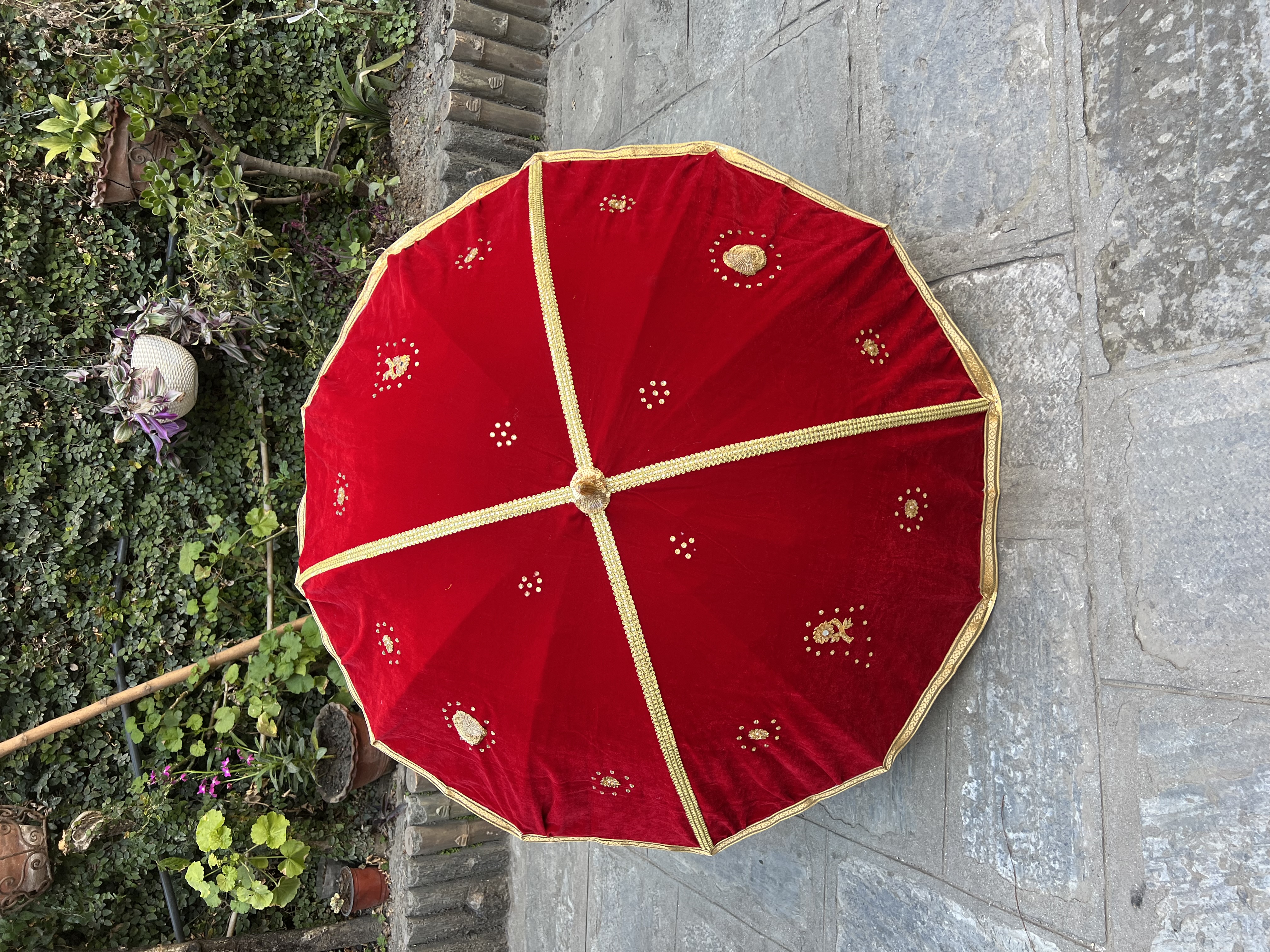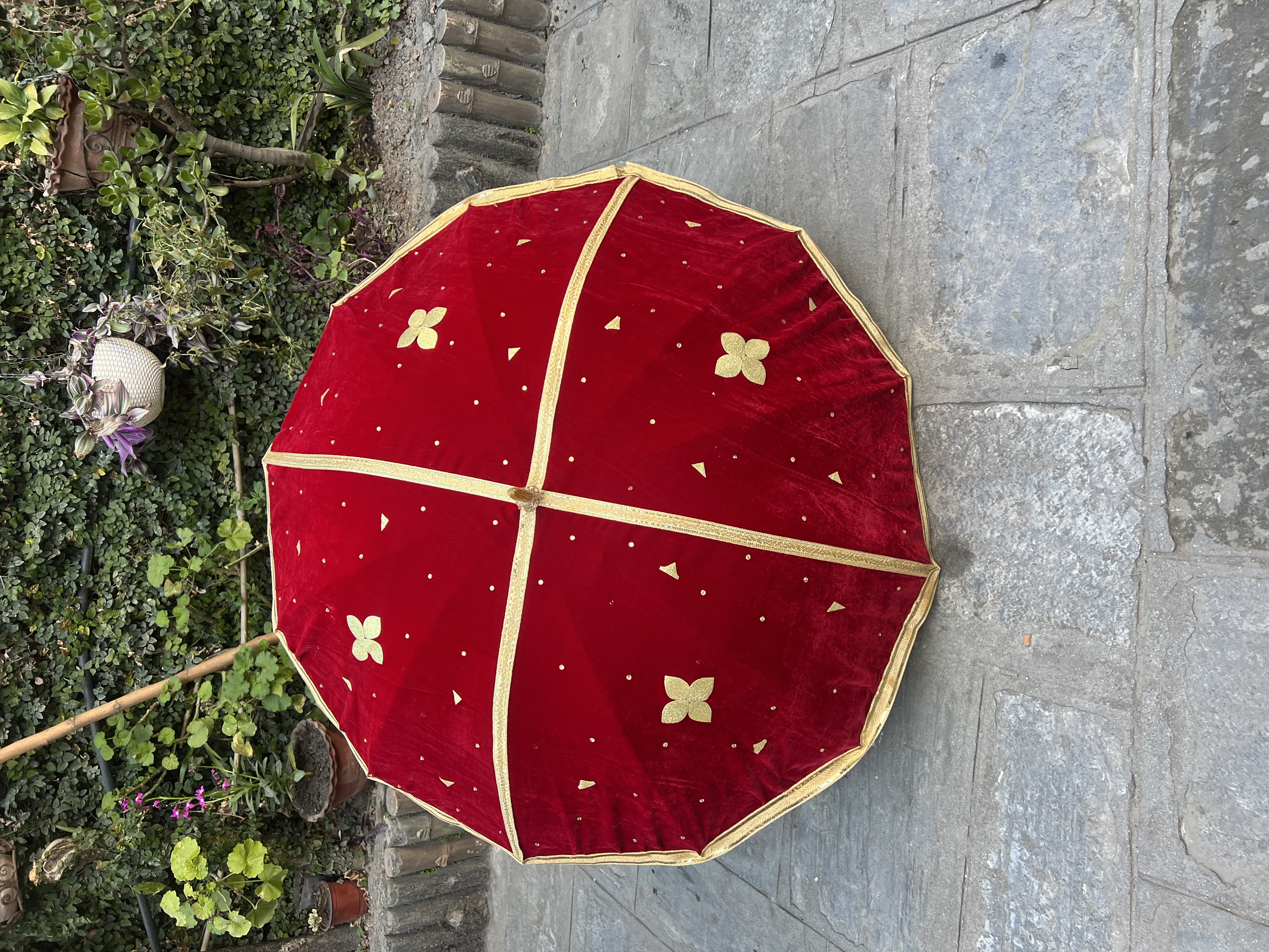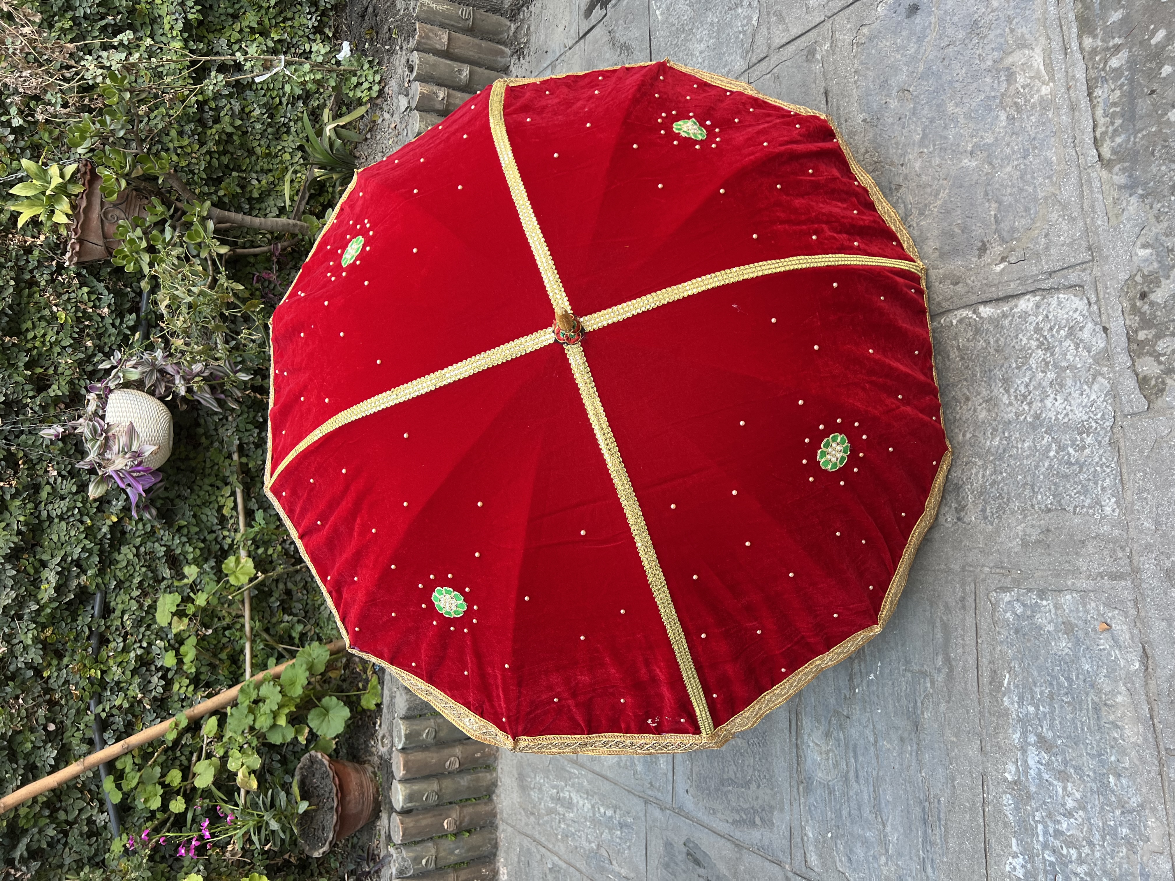 Add a touch of tradition with this Velvet Nepali Umbrella, handmade in Nepal with rich velvet fabric and intricate detailing. Perfect for decor, cultural events, or gifting, it reflects Nepal’s vibrant craftsmanship and heritage in every stitch.